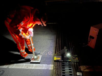 In de nacht van 3 op 4 maart 2025 vond de eerste meetronde plaats. Met een team van circa 20 mensen zijn 2 vrachtwagens van elk 50 ton de brug op gestuurd. Floris vertelt: “We hebben data verzameld over het last-vervormingsgedrag van de brug. Dat hebben we gedaan door de vervormingen van de brug te meten onder verschillende samengestelde belastingcombinaties van de vrachtwagens. Met verschillende meettechnieken verzamelden we gegevens over doorbuigingen, verdraaiingen, en bewegingen van voegen. Zo brengen we in beeld welke krachten hier plaatsvinden.”