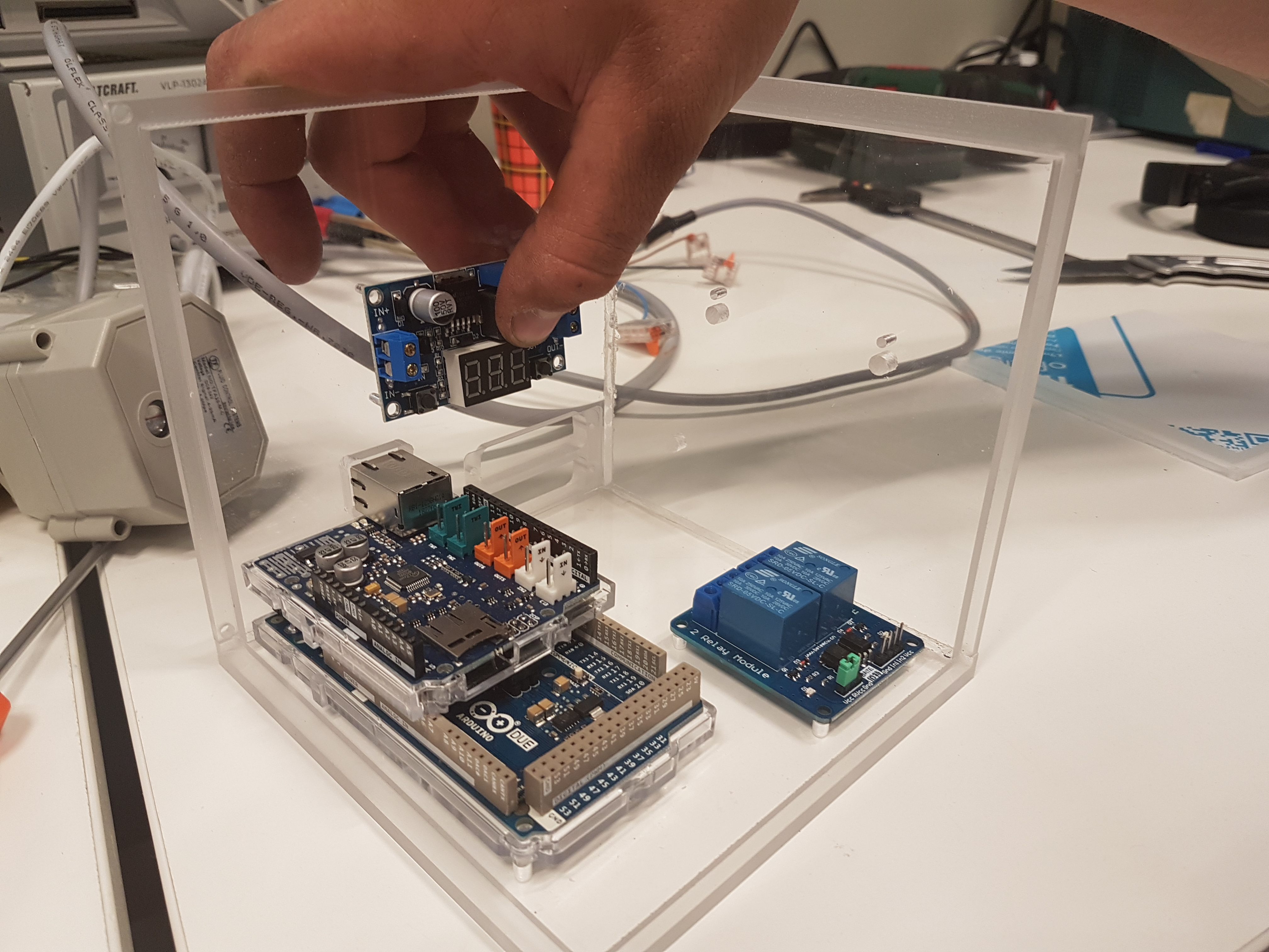 Er is gewerkt met 3 industriële sensoren ivm de betrouwbaarheid en dus veiligheid. Daarnaast zijn tal van low budgetsensoren en Arduino’s gebruikt om extra data te verzamelen. AR schil wordt komend schooljaar aangebracht door Avans.