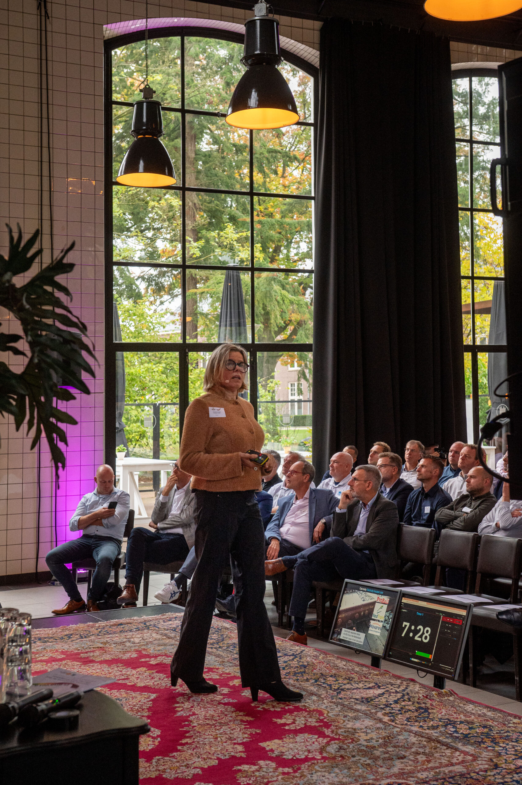 Even na tienen neemt dagvoorzitter Esther van der Voort de microfoon. Ze heet de bezoekers welkom, licht het programma toe en noemt de maintenance-sector ‘de gaafste sector van de wereld’.