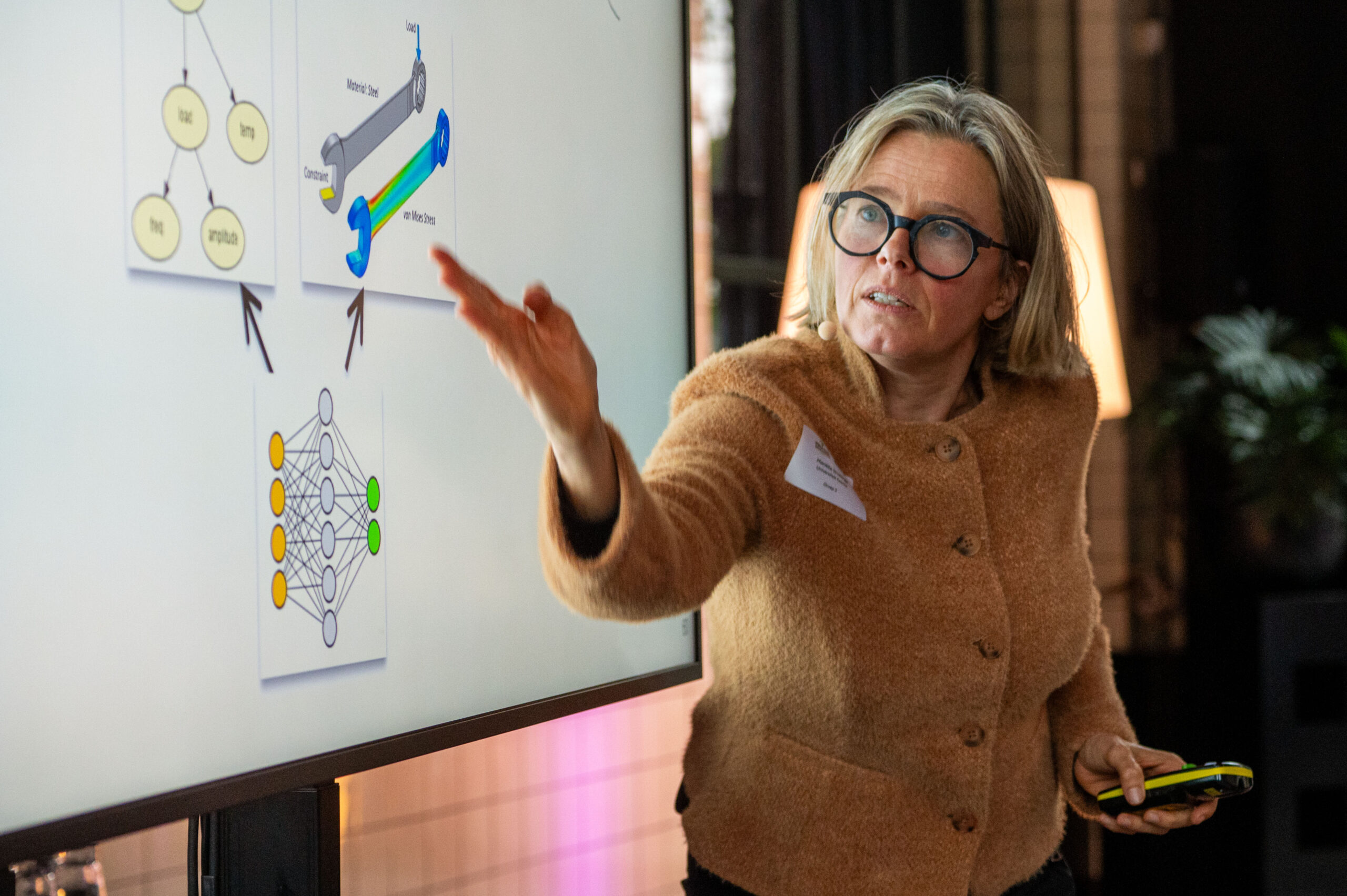 De tweede workshop gaat over de WCM Summer School 2025, die afgelopen zomer in het teken stond van remanufacturing in de hightech-toeleverketen. Summer School deelnemers werkten in teams aan een businesscase voor een triage center waar retourmodules worden beoordeeld en opnieuw geschikt gemaakt voor gebruik. Het winnende team bedacht een online marketplace-model waarin onderdelen na diagnose digitaal worden aangeboden zodat leveranciers ze kunnen terugkopen, reviseren en herinzetten. Het model combineert economische voordelen met circulaire winst. In de workshop van vandaag wordt verkend of zo’n aanpak ook toepasbaar is in de infrasector, een vraag die tot levendige discussie leidt over materialenpaspoorten, levensduurverlenging en standaardisatie.