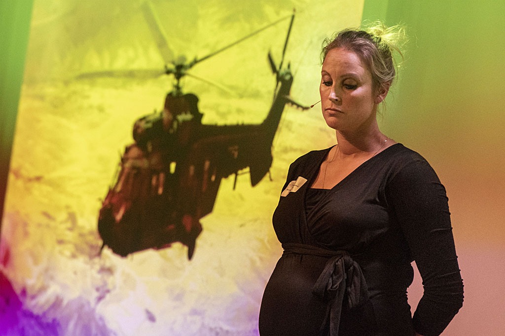 Kapitein Dominique Schreinemachers is helikopterpiloot bij de Nederlandse Luchtmacht. Tijdens een missie in Afghanistan werd ze door een toevalstreffer geraakt, waardoor de besturing van de staartrotor uitviel. Twaalf minuten lang fladderde het toestel naar beneden voordat Schreinemachers het veilig op de grond wist te krijgen. Ze beschrijft haar belevenissen en de hachelijke momenten aan het publiek en benadrukt dat ze door het incident nog meer vertrouwen heeft gekregen in de techniek. “We hadden veel olie verloren en vlogen al die tijd ‘stang op stang’. Toch ging het goed. Ik heb veel respect voor het onderhoudspersoneel en het materieel.”