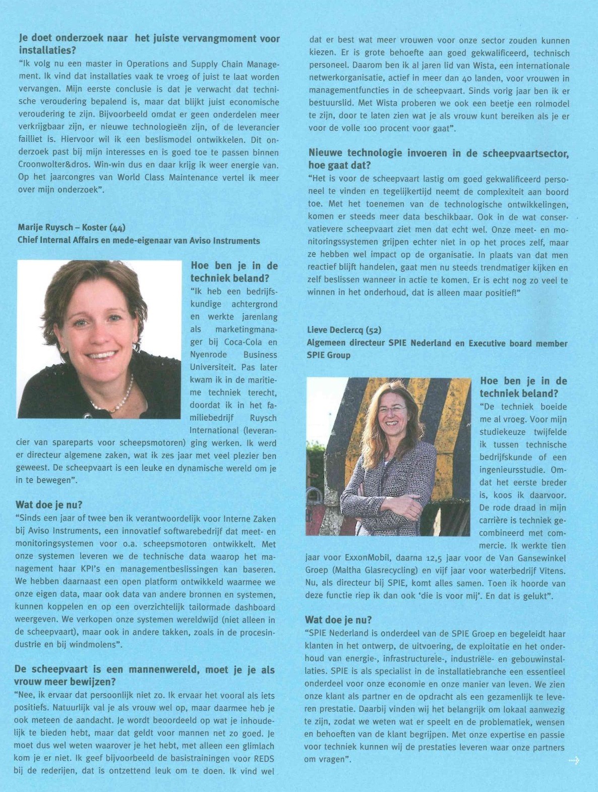 “Nee, ik ervaar dat persoonlijk niet zo. Ik ervaar het vooral als iets positiefs. Natuurlijk val je als vrouw wel op, maar daarmee heb je ook meteen de aandacht. Je wordt beoordeeld op wat je inhoudelijk te bieden hebt, maar dat geldt voor mannen net zo goed. Je moet dus wel weten waarover je het hebt, met alleen een glimlach kom je er niet. Ik geef bijvoorbeeld de basistrainingen voor REDS bij de rederijen, dat is ontzettend leuk om te doen. Ik vind wel dat er best wat meer vrouwen voor onze sector zouden kunnen kiezen. Er is grote behoefte aan goed gekwalificeerd, technisch personeel. Daarom ben ik al jaren lid van Wista, een internationale netwerkorganisatie, actief in meer dan 40 landen, voor vrouwen in managementfuncties in de scheepvaart. Sinds vorig jaar ben ik er bestuurslid. Met Wista proberen we ook een beetje een rolmodel te zijn, door te laten zien wat je als vrouw kunt bereiken als je er voor de volle 100 procent voor gaat.”